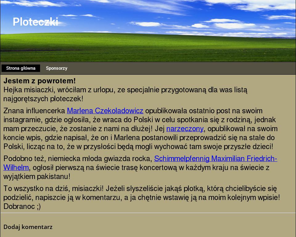 Strona z aktualnościami dziejącymi się w Parafii w Wielkiej Klonii